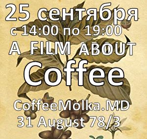 Мы начали новый проект, связанный с кофе. Каждый четверг, начиная с 14:00 и до показа вечернего фильма (в Кишинёвском ретро-кинозале), у нас будут демонстрироваться фильмы о кофе. Приходите — и за чашкой кофе познакомьтесь с историей этого напитка, покорившего весь мир.