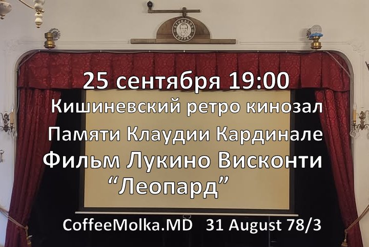 23 сентября ушла из жизни Клаудия Кардинале — звезда и икона стиля фильмов шестидесятых годов и воплощение «итальянской грации», звезда фильмов «Леопард», «Розовая пантера» и «8 ½». В её честь мы решили показать фильм Лукино Висконти «Леопард». Мы возобновили наш, из первой Coffeemolki, проект «Кишинёвский ретро-кинозал».