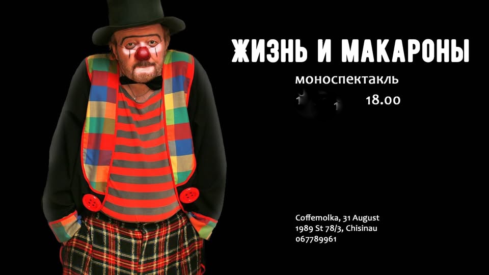 ЖИЗНЬ И МАКАРОНЫ(мысли старого клоуна) Моноспектакль Александра Кожухаря По мотивам воспоминаний Федерико Феллини Режиссура — Евгений Привалов